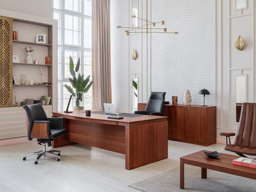 Красиво обставленный кабинет руководителя говорит не только о его безупречном вкусе, но и об отличном положении дел в компании. Обратите внимание на мебель из массива натуральной древесины, которая прекрасно подойдет в офис, подчеркнет высокий статус директора и сразу сделает интерьер элегантным. В интернет-магазине «Правильный офис» можно купить шкафы, письменные столы и другие предметы меблировки из роскошного каталога мебели с доставкой по Москве и России.