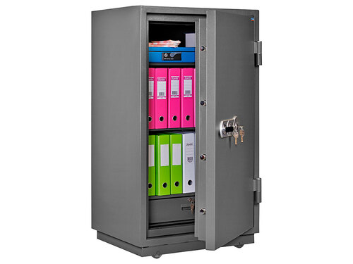 3. Уровень взломостойкости и тип замка. Чем ценнее содержимое, тем надежнее должен быть сейф. Самым взломоустойчивым считается тандем ключевого замка и кодового или биометрического.