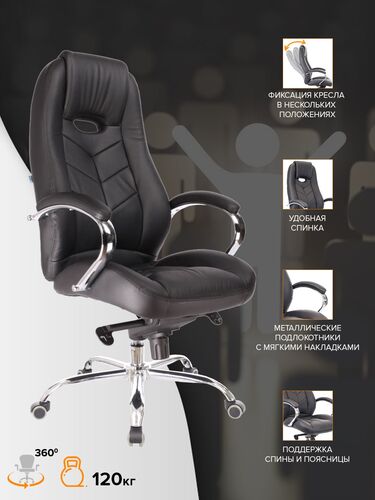 Кресло руководителя Kron M (кожа) EC-366 Leather Black Черный