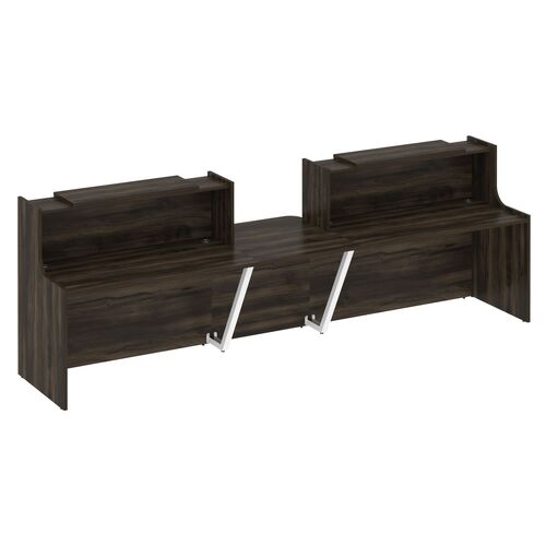 Основное назначение мебели на ресепшн – разграничение пространства на две зоны - административную и публичную. Эта офисная мебель может располагаться у входа в компанию, либо устанавливается в приемной, где служит для удобства обслуживания посетителей, регистрации звонков, решения различных служебных вопросов. Стойка прямой формы состоит из нескольких элементов – фасадной и гостевой части столешницы, внутренних перегородок и полок (у некоторых моделей). Плюсы такой мебели: