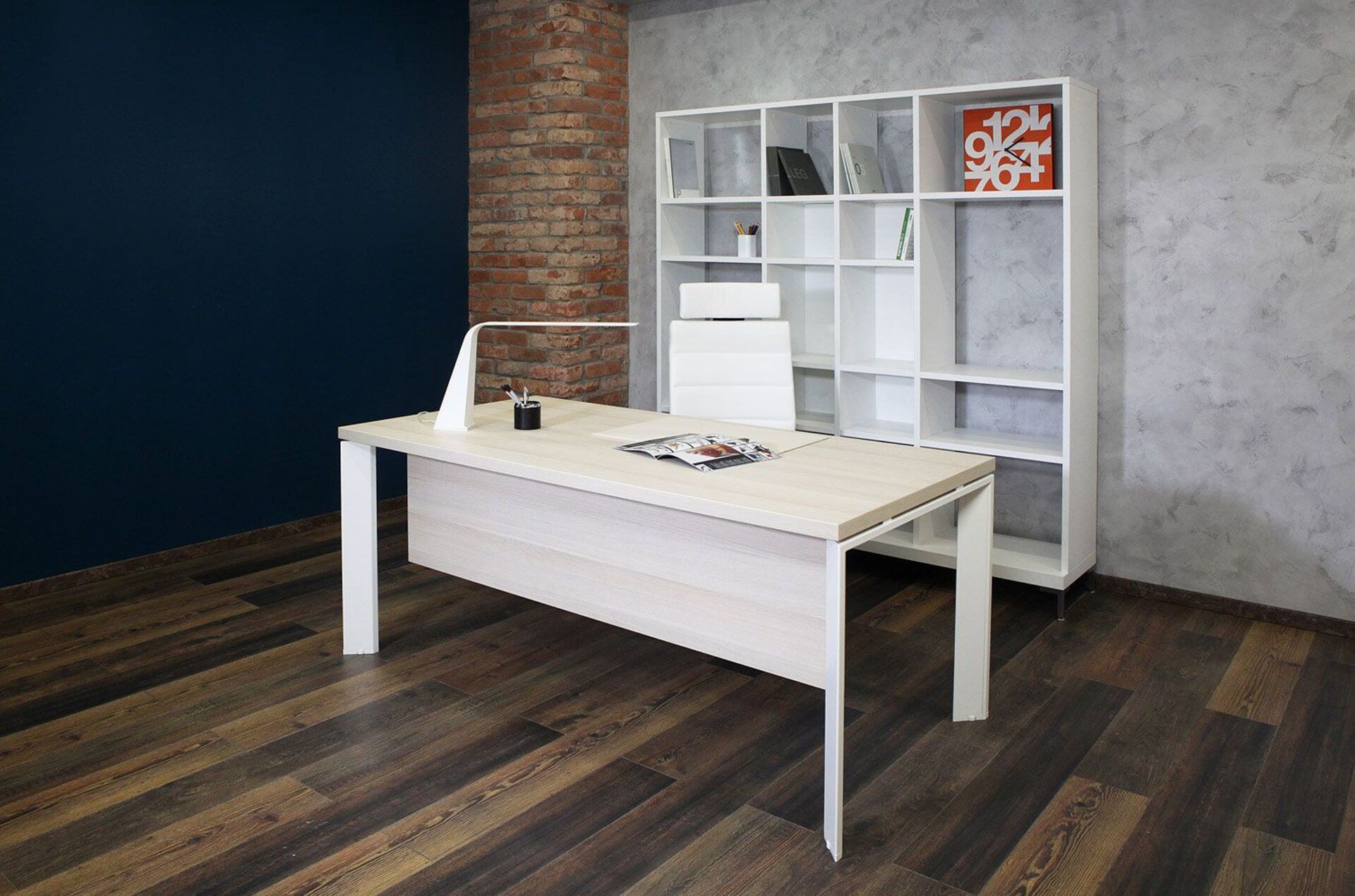 Основную роль в формировании кабинета директора играет письменный стол: в наличии – модели простой прямоугольной формы длиной 160-200 см на стильных металлических опорах. Также в коллекцию входят столы для переговоров – есть круглые, квадратные и овальные модели длиной до 180 см. У нас можно купить столики с регулируемой высотой и брифинг-приставки для увеличения полезной площади стола. В линейку мебели для директора включены всевозможные тумбы и шкафы (стеллажи, открытые, закрытые, низкие, высокие, комбинированные).