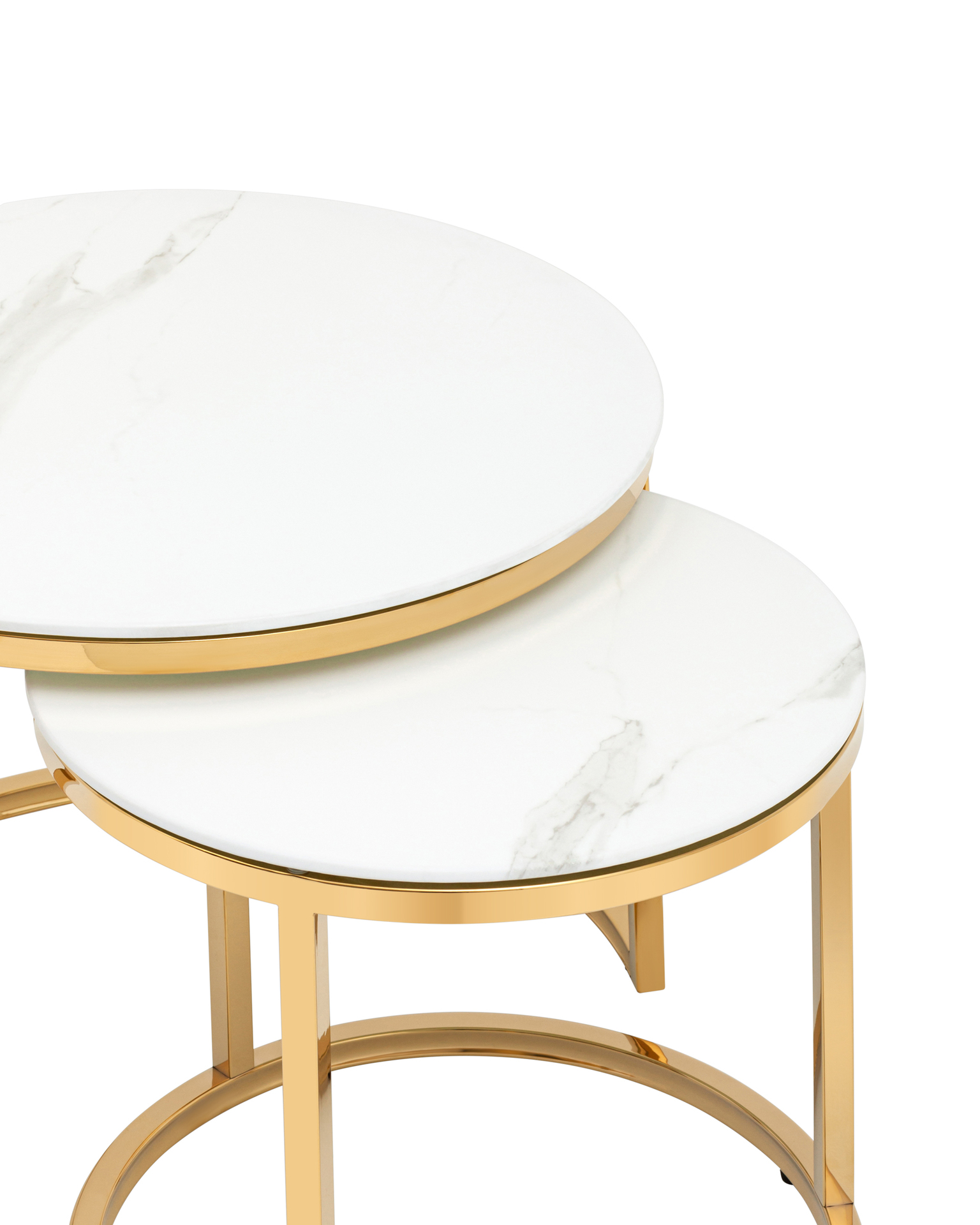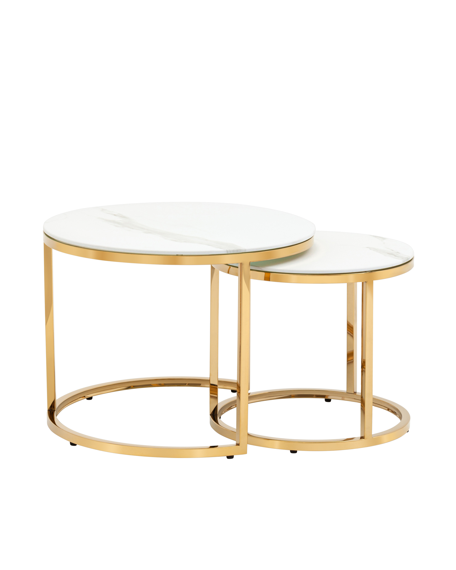 Набор журнальных столиков Селена 60 и 45 см стекло белый мрамор сталь золото Селена