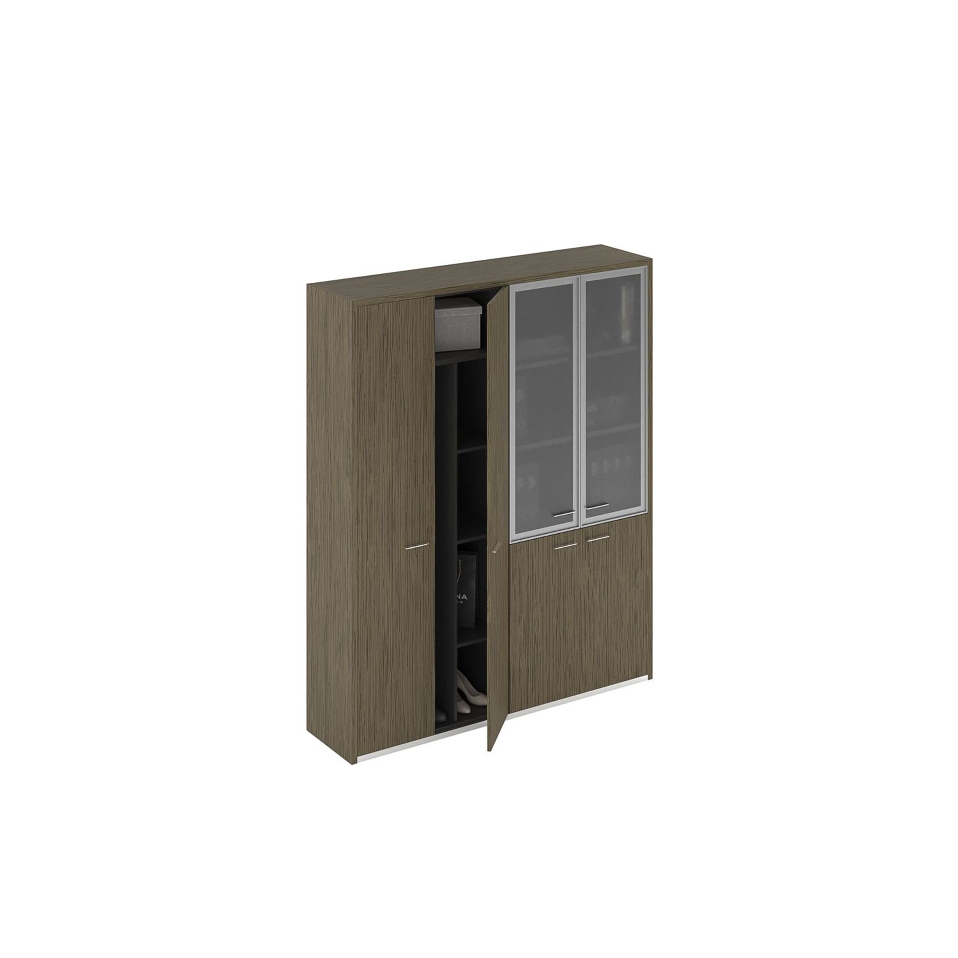 Шкаф высокий комбинированный (для одежды с дополнением + со стеклянными дверями) ПМ 357