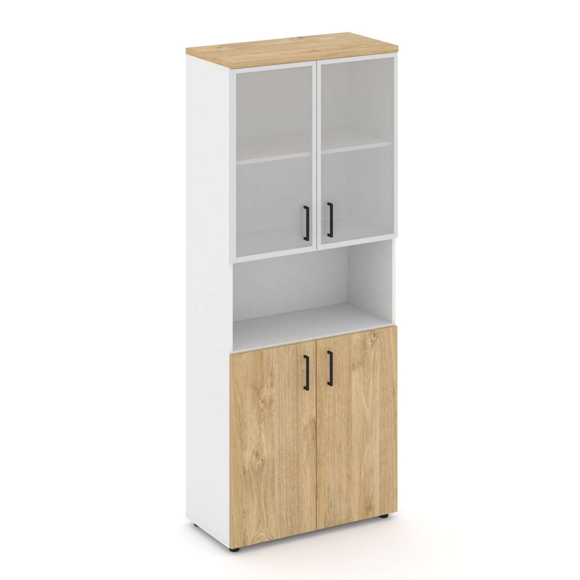 Шкаф высокий широкий (2 низких фасада ЛДСП + 2 низких фасада стекло сатин в раме) SN.STS-106