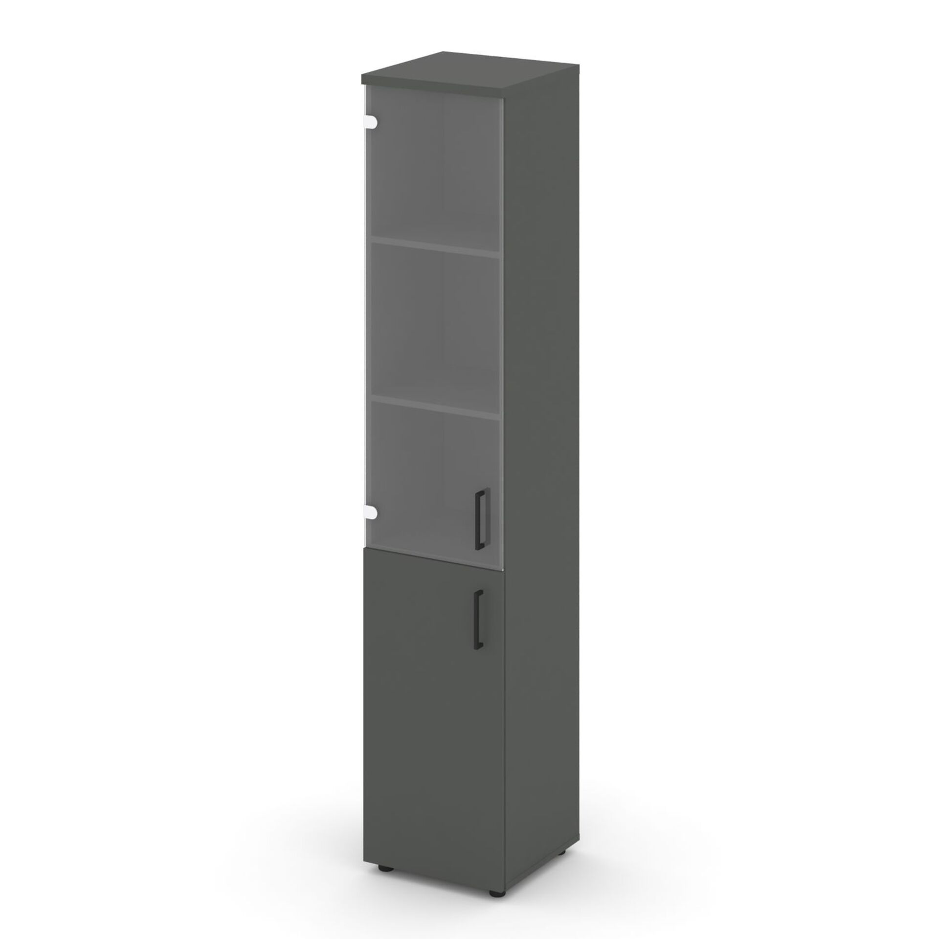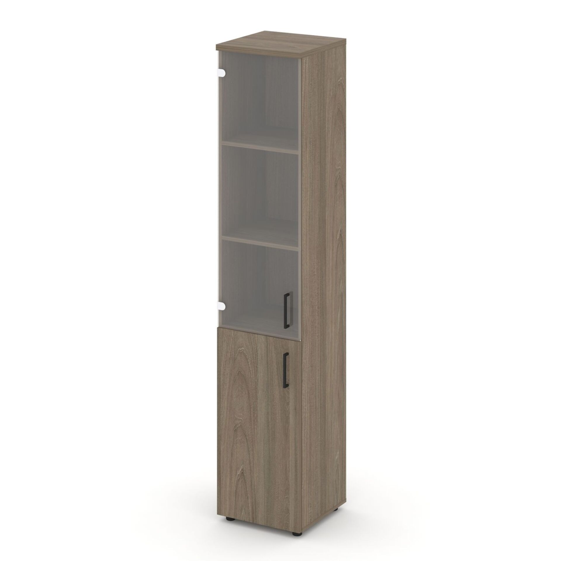 Шкаф высокий узкий левый (1 низкий фасад ЛДСП + 1 средний фасад стекло прозрачное) SN.STU.E-102(L)