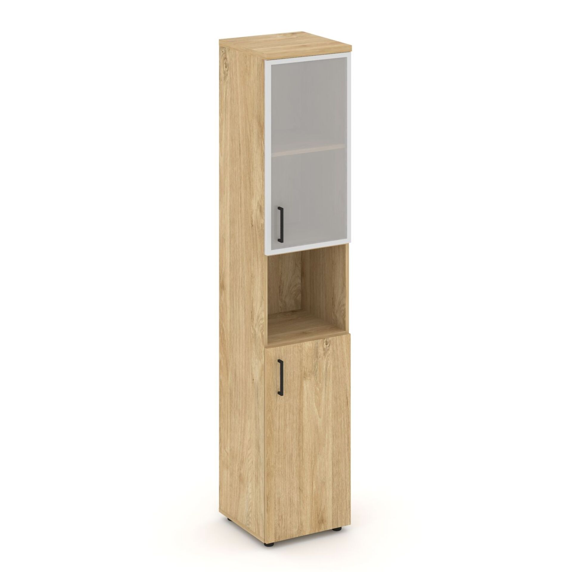 Шкаф высокий узкий правый (1 низкий фасад ЛДСП + 1 низкий фасад стекло сатин в раме) SN.STU.E-106(R)