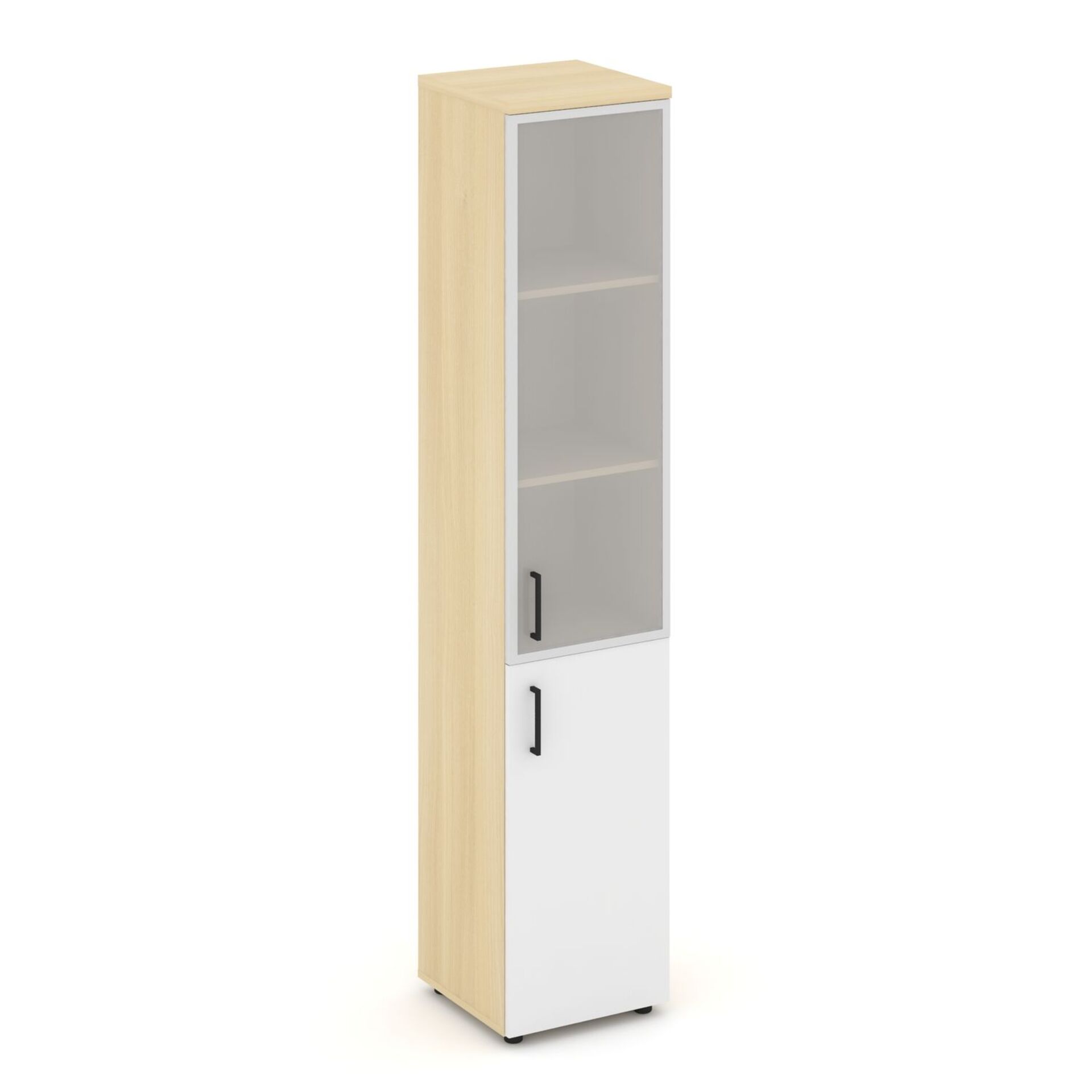 Шкаф высокий узкий правый (1 низкий фасад ЛДСП + 1 средний фасад стекло сатин в раме) SN.STU.E-103(R)