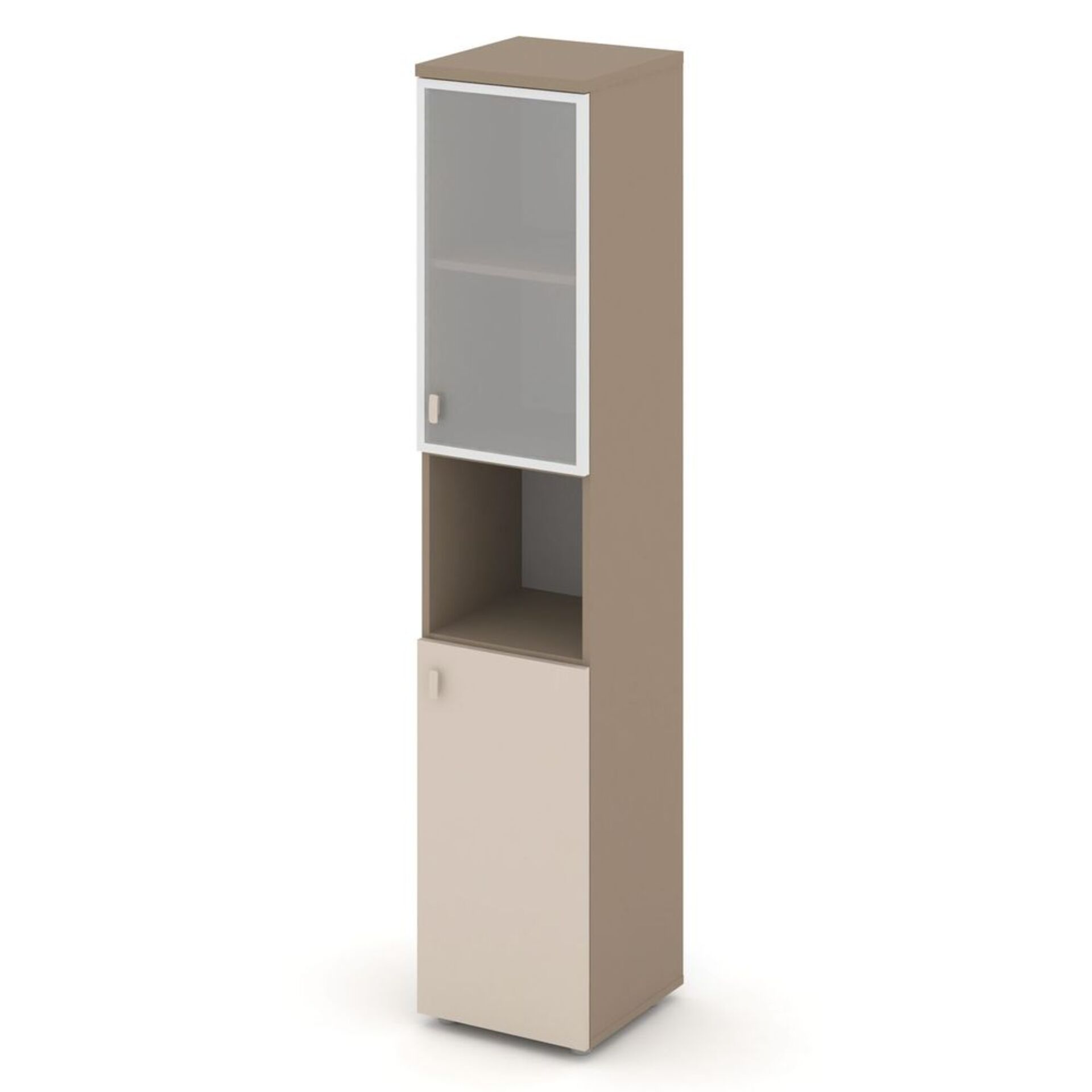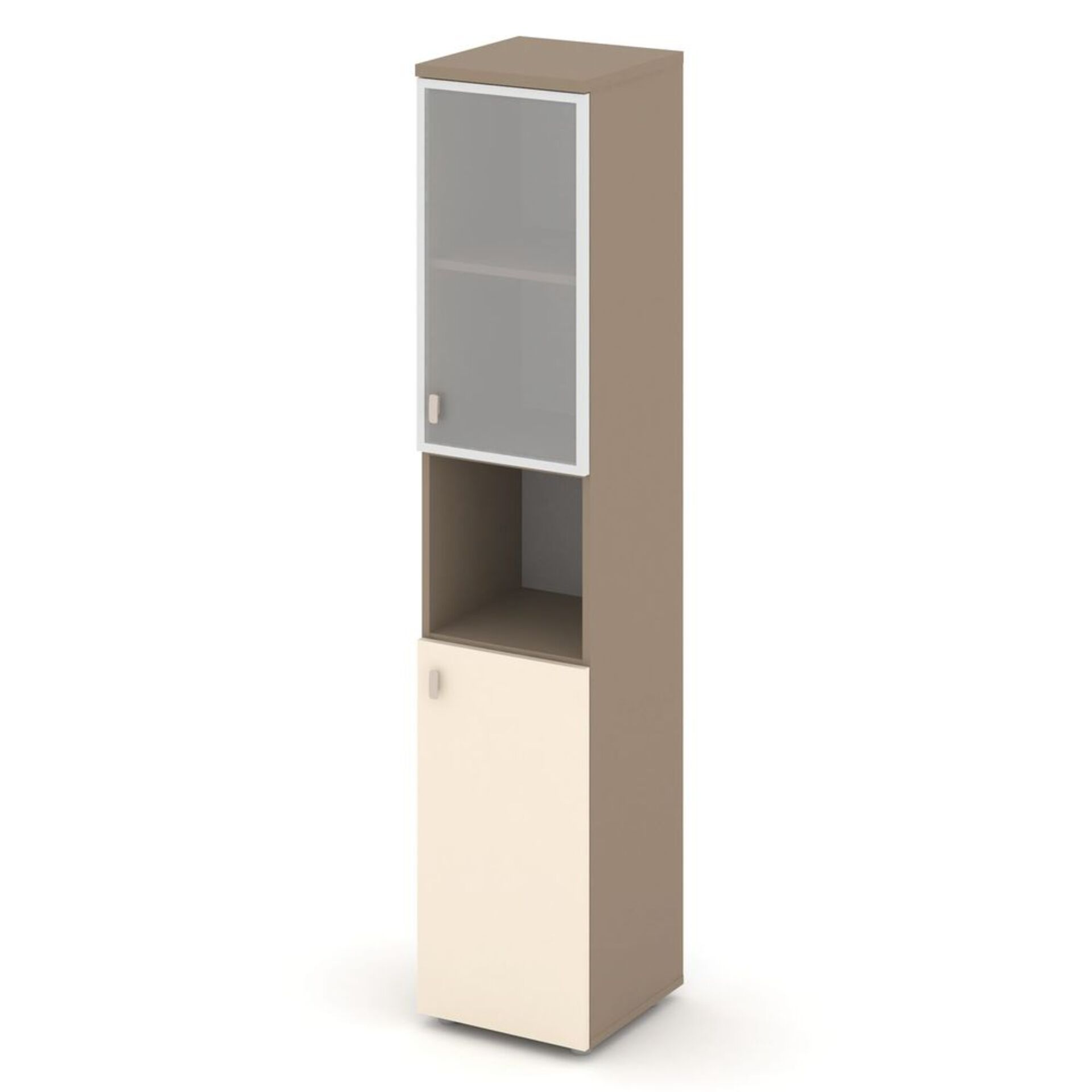 Шкаф высокий узкий правый (1 низкий фасад ЛДСП+1 низкий фасад стекло в раме) ES.SU-1.4R (R)
