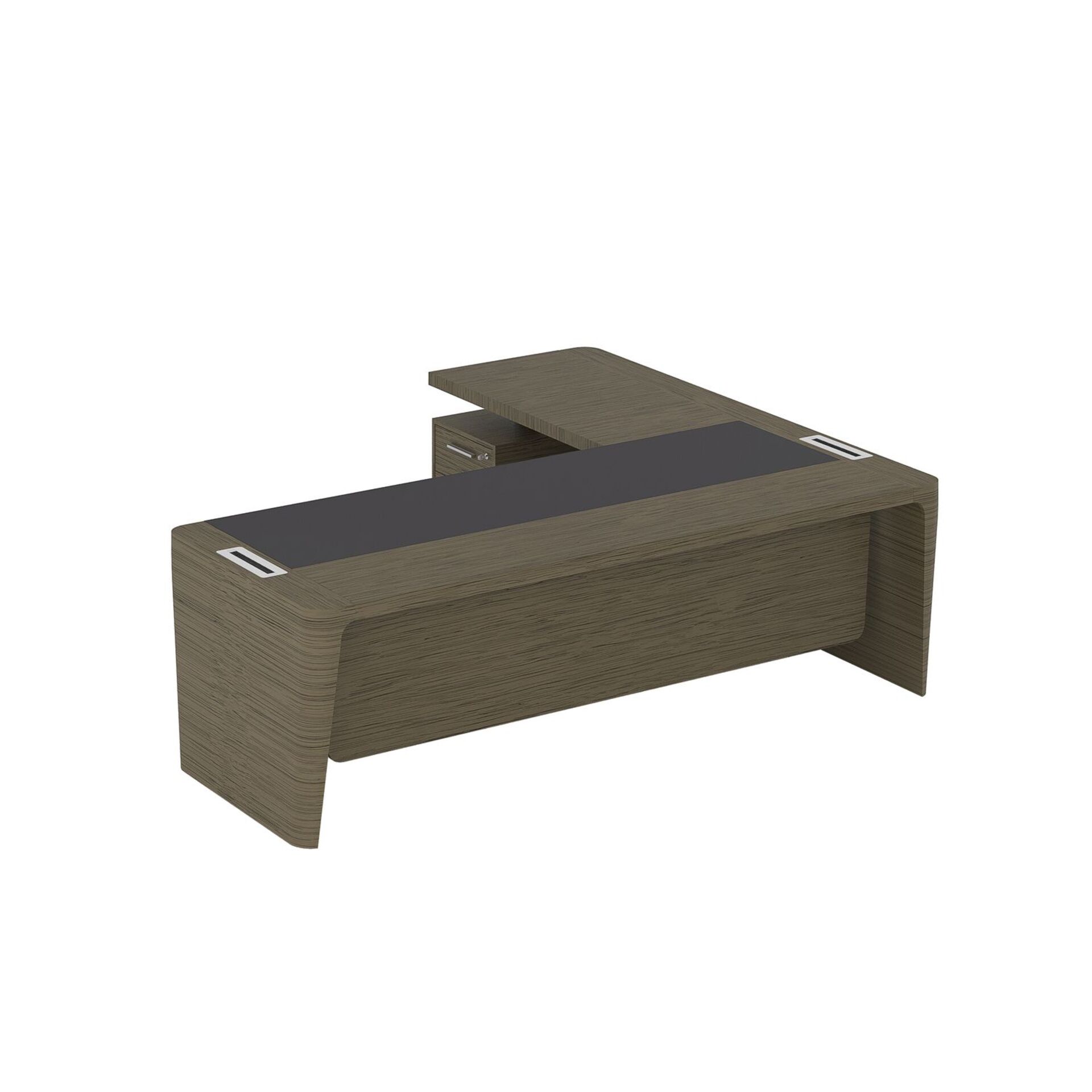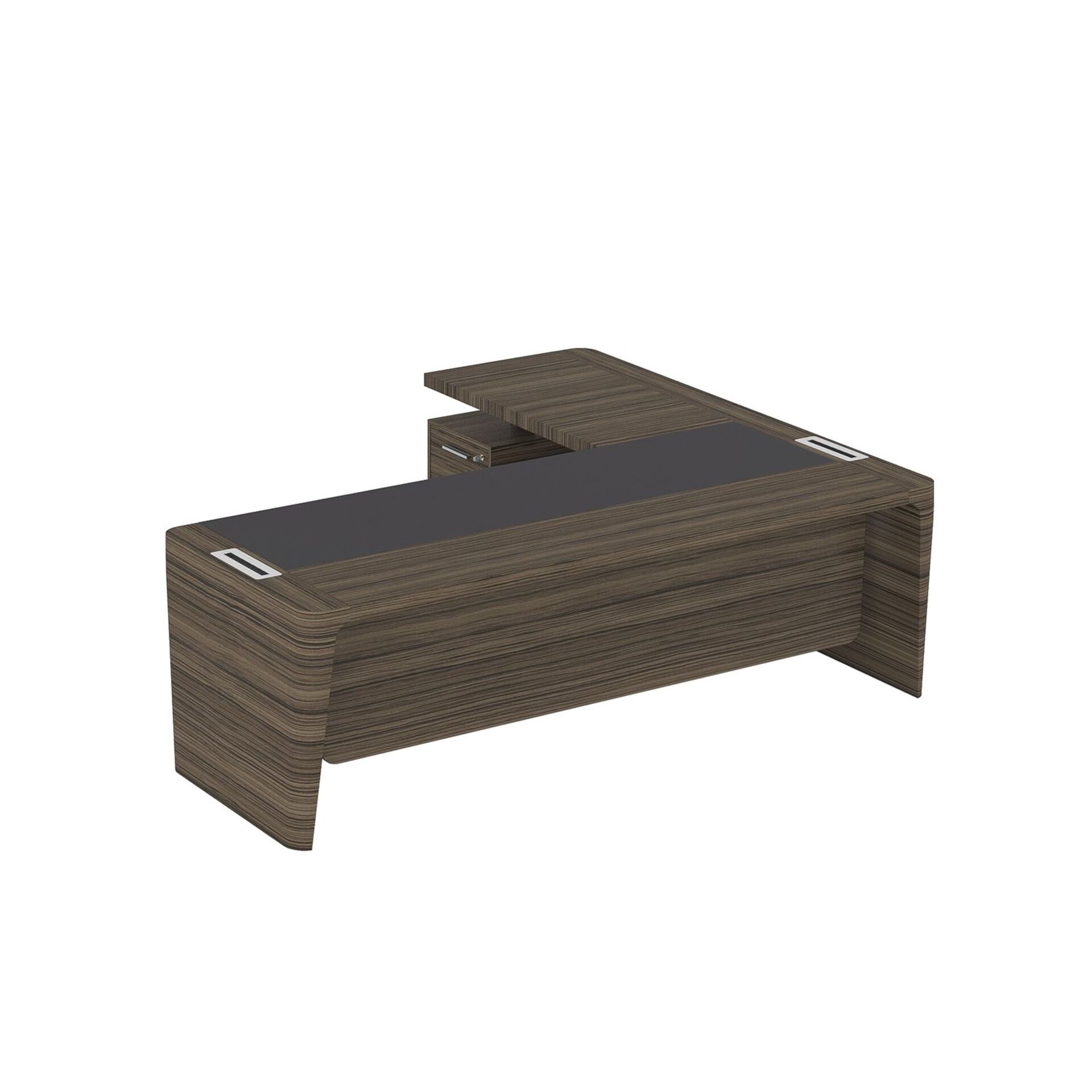 Стол для руководителя левый с кожаным бюваром, приставкой на малой тумбе и фронтальной панелью ПМ 184