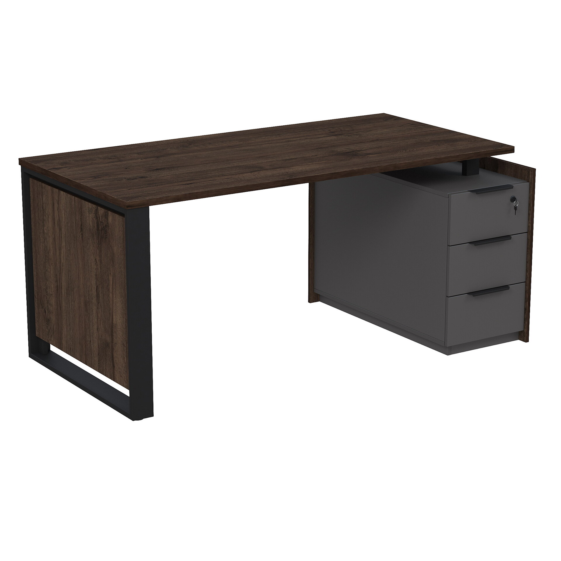 Стол рабочий на опорной угловой тумбе, с ящиками, с замком 15СОУ-ШД.1608